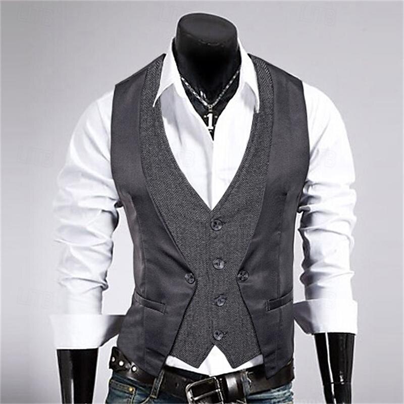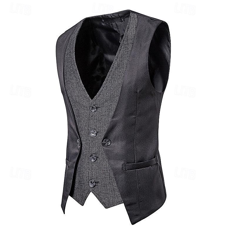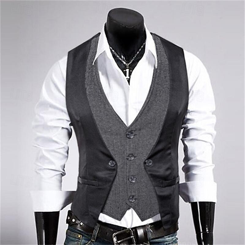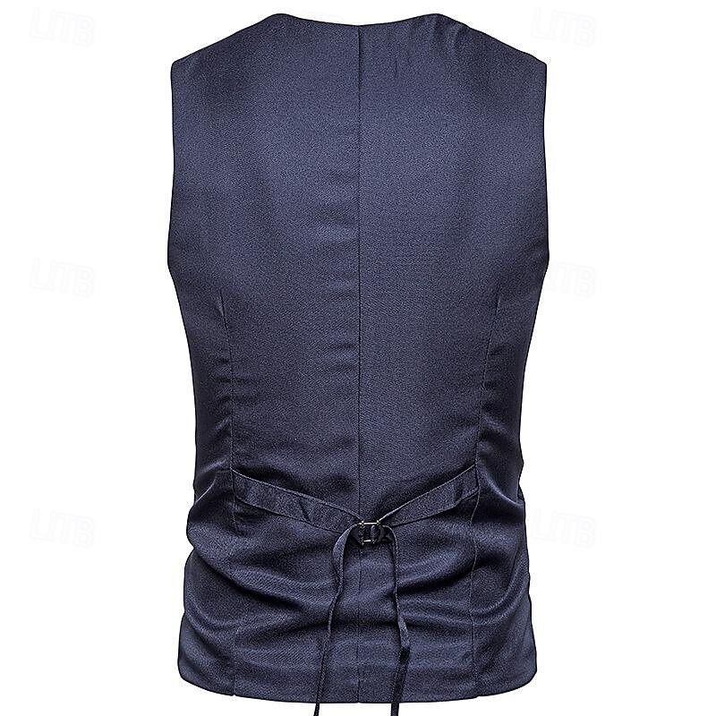 More information about Men's Vest Gilet Wedding Event / Party Daily Fashion Business Spring & Fall Patchwork Button 2 in 1 Polyester cozy Color Block Single Breasted One-button V Neck Regular Fit Black Navy Blue