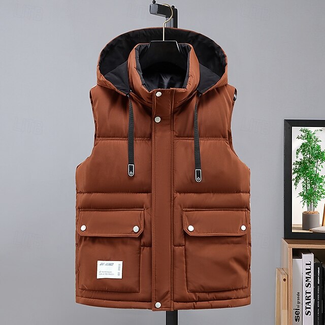 This Men's Puffer Vest Hoodie Vest Quilted Vest Daily Wear Vacation Going out Fashion Basic Spring & Fall Zipper Multi Pocket Polyester relaxing Plain Hidden Stand Collar Regular Fit Black White Brown combines elegant design with practical functionality. Every detail has been carefully considered to ensure you get the best possible experience. The superior construction means this product will serve you well for years to come.