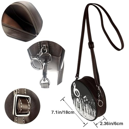 Women Music Notes Printed Cute Round Leather Shoulder Bag with Adjustable Strap Black White Coffee One Size 1
