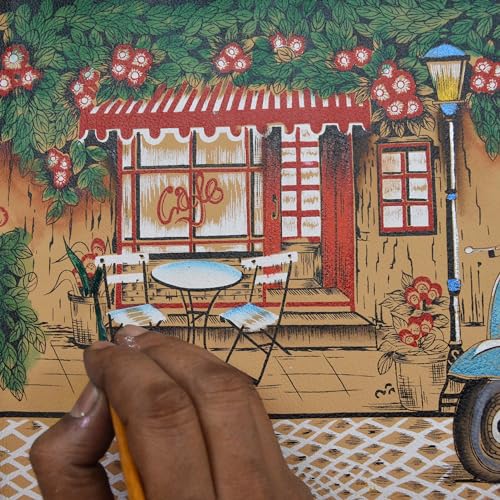• LE CAFE ARTWORK - Each bag is hand-painted to create a piece of art inspired by nature and vintage themes. Picturesque ambience contains every the timeless components, a small table outside a café, a scooter, and dim street lighting