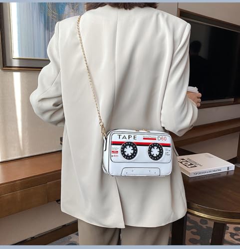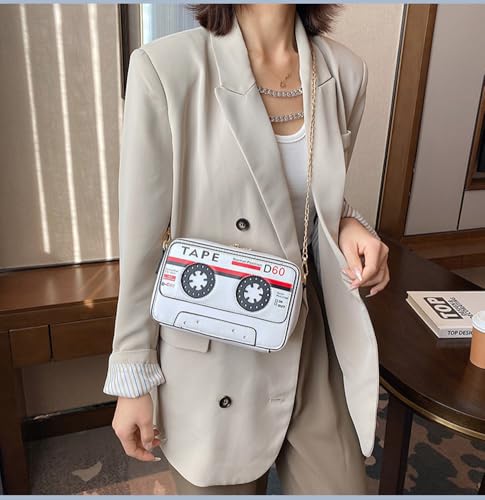 More information about Sister Amy® Retro Tape-Strap Crossbody Bag Women's PU Evening Clutch Shoulder Bag Radio Recorder PU Crossbody Bag