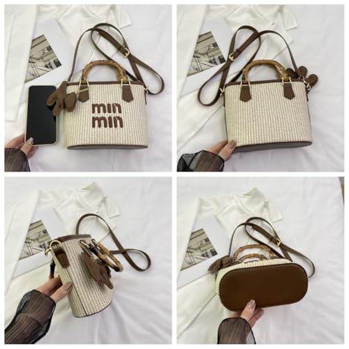 Woven Bucket Bag Crossbody HandBag Purse, Bamboo-Style Handle & Cute Dog Charm, Gift for Friend Her 7