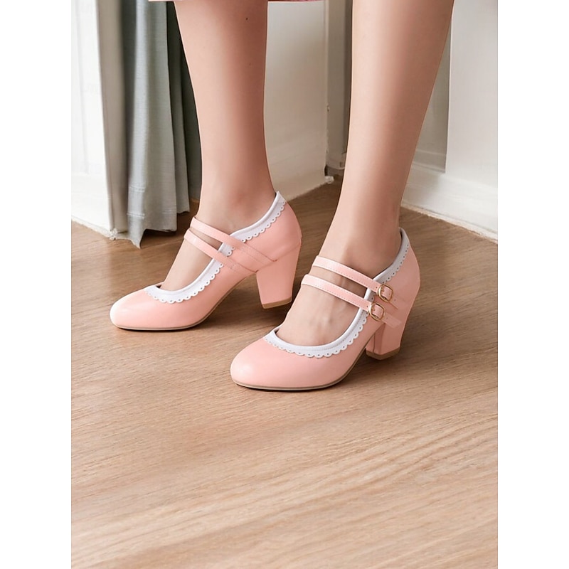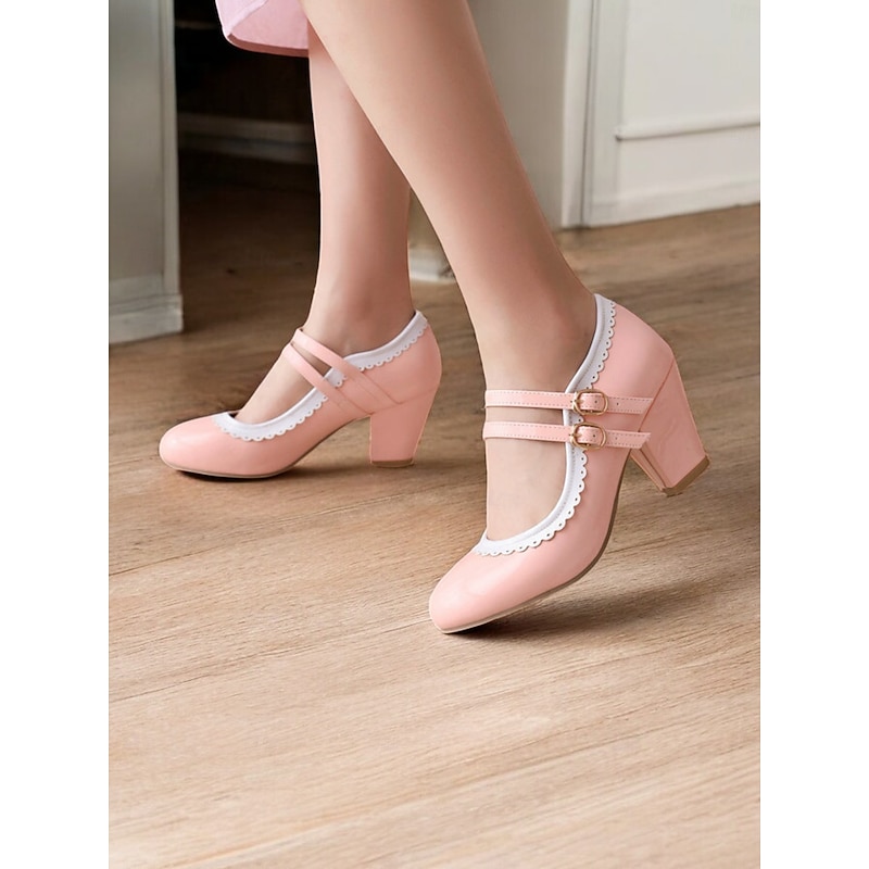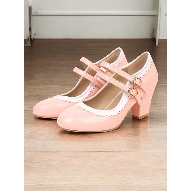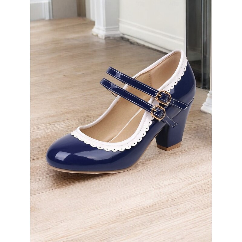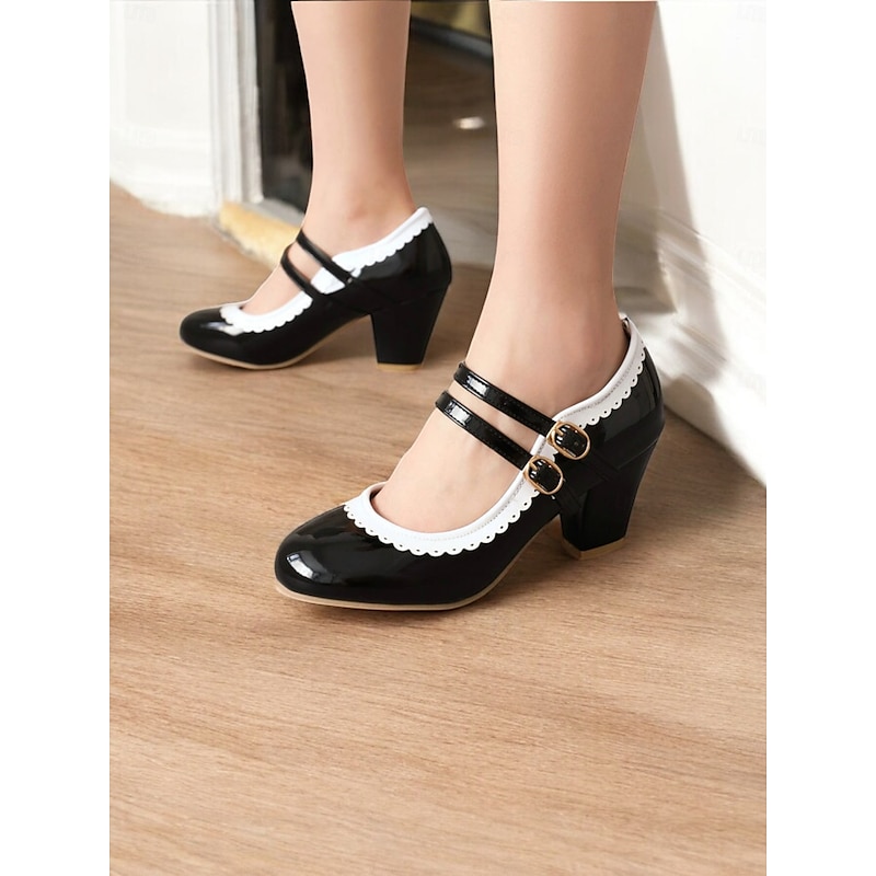 Highlights [Fabric & Material]: Crafted from high-quality PU leather with a synthetic leather lining, these Mary Jane heels exude a glossy and polished finish, ensuring durability and easy maintenance. The rubber outsole provides excellent grip and longevity. [Silhouette & Design]: Designed with a classic round toe and sturdy chunky heel, these shoes offer a harmonious blend of vintage elegance and present-day comfort. The vibrant green color with white decorative stitching enhances their playful, retro-inspired style, making them a standout addition to any wardrobe. [Design Highlights]: Featuring double adjustable buckle straps in gold, these heels ensure a snug and customizable fit. The scalloped edges add a playful touch, while the color-block pattern highlights the shoe's retro charm. [Occasions]: Ideal for various occasions, from daily wear to formal gatherings. Whether you're heading to work or attending a party, these heels add a pop of color and sophistication to your ensemble, perfect for spring, summer, fall, and winter. [Size Range & Suggestions]: Available in a comprehensive size range from US5.5 to US10.5, select your usual size for the best fit. These heels are designed to fit standard sizing for women, offering comfort and style for every occasion. Perfect for everyday use. superior materials and excellent craftsmanship ensure long-lasting durability.