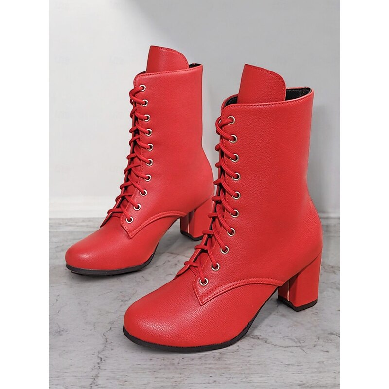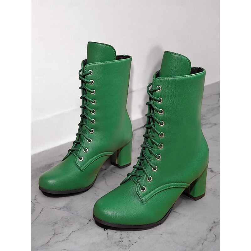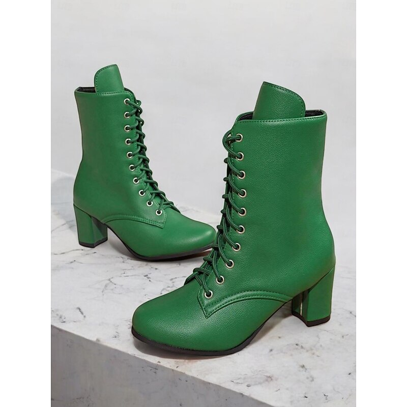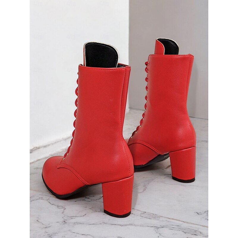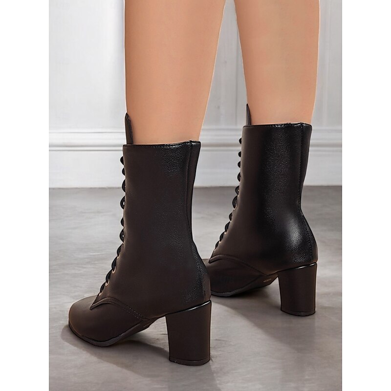 Highlights [Fabric] : Crafted from high-quality faux leather, these boots showcase a sleek and polished exterior. The material is not only durable but also easy to maintain, making them suitable for everyday use, particularly in the fall and winter seasons. [Silhouette] : Featuring a comfortable mid-heel with a sturdy block structure, these boots ensure both stability and support. The round toe design provides ample space for comfort, making them an ideal choice for long wear. [Design Highlights] : The lace-up front adds a fashionable touch while allowing for an adjustable fit to enhance comfort. The classic Victorian-inspired design paired with present-day faux leather lends a timeless and elegant appeal to the boots. [Occasions] : Perfectly suited for a variety of occasions, these boots can take you from a business meeting to a casual outing with ease. Whether at work, in the office, or attending a formal event, their versatility makes them a fabulous addition to any outfit, easily pairing with skinny jeans or a chic dress. [Size Range] : Available in a wide selection of sizes, from US6 to US10.5, ensuring a comfortable fit for various foot sizes. These boots offer an elegant choice for individuals seeking both comfort and style in footwear. Perfect for everyday use. superior materials and excellent craftsmanship ensure long-lasting durability.