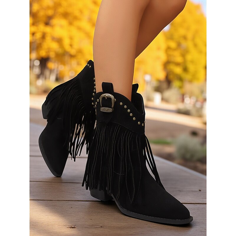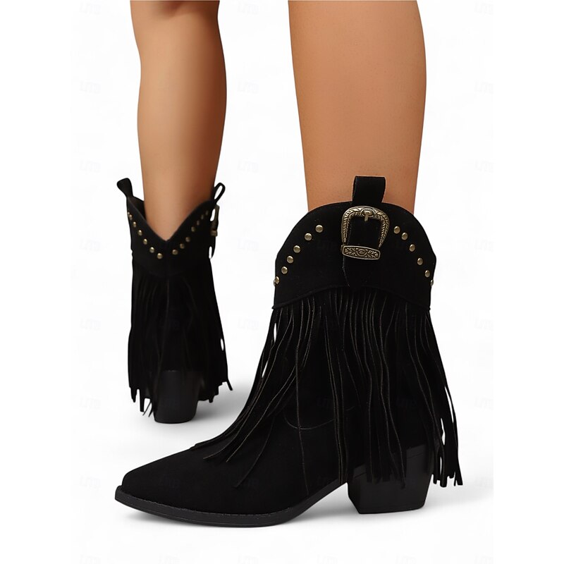 This Women's Suede Fringe Ankle Boots with Studded Trim and Western Buckle, Bohemian Cowboy Style Footwear combines elegant design with practical functionality. Every detail has been carefully considered to ensure you get the top possible experience. The first-class construction means this product will serve you well for years to come.