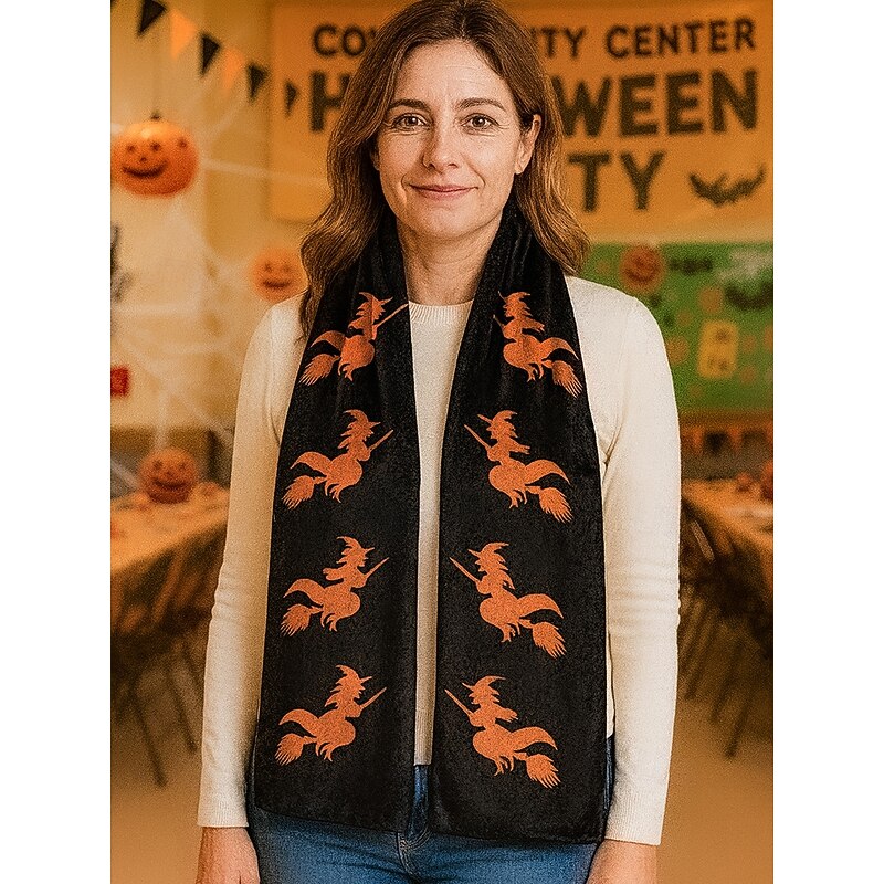 Women's Halloween Printed Scarf – Cozy Long Shawl Wrap with Ghost, Jack-O'-Lantern & Witch Patterns, Soft Lightweight Fall Accessory for Costume Party, Trick-or-Treat, Festivals & Daily Wear 15