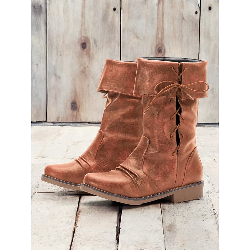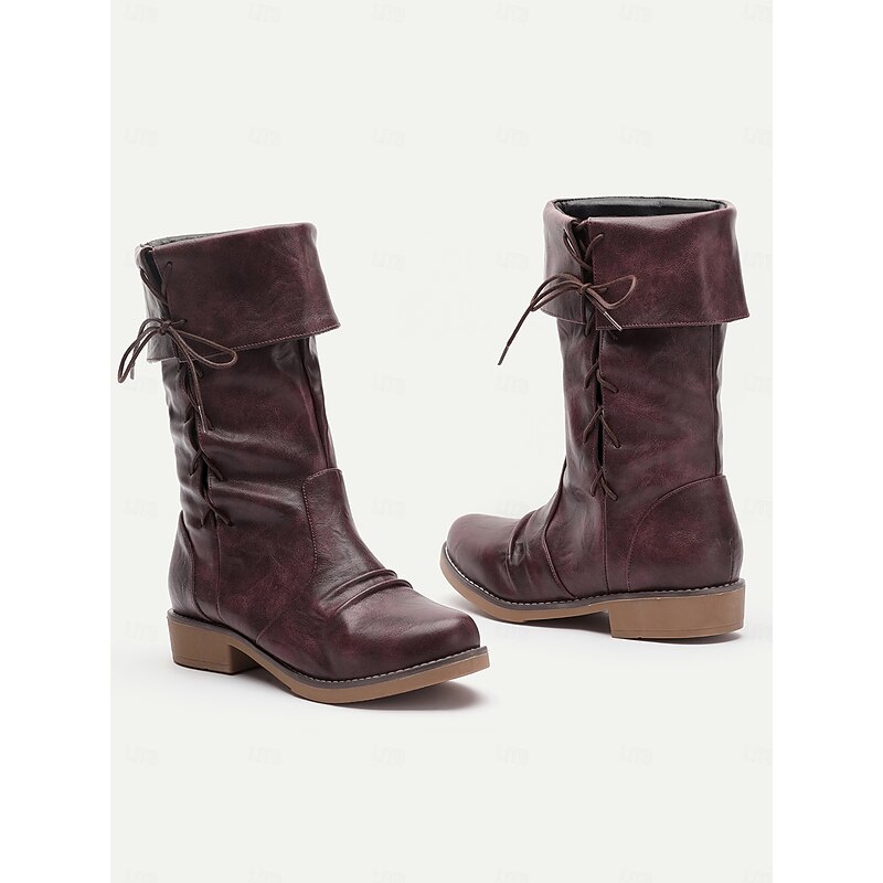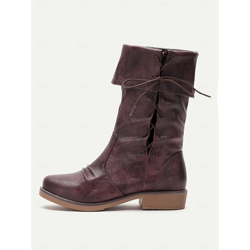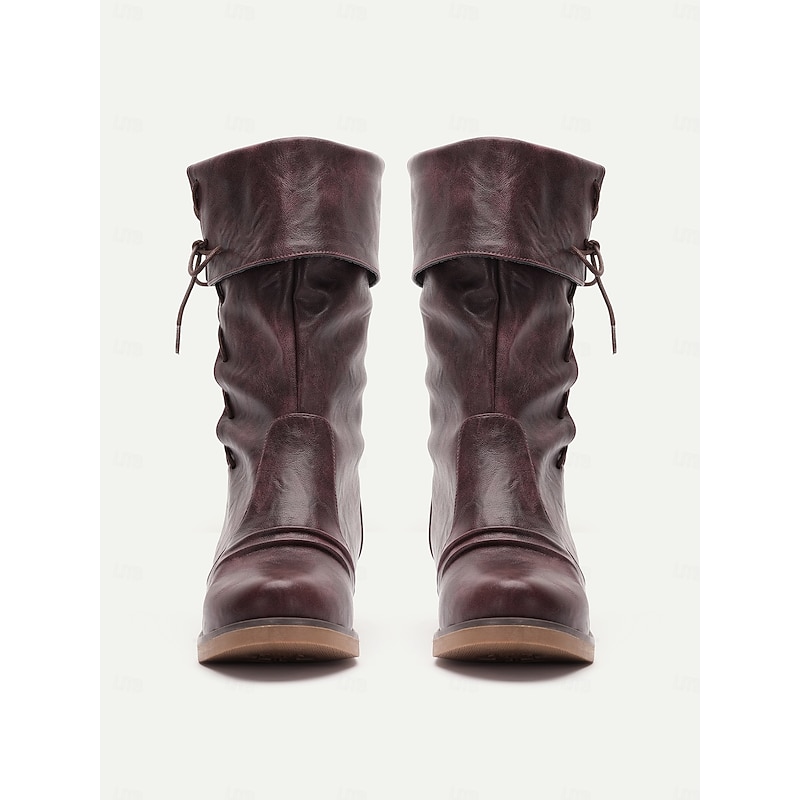 : Crafted from high-quality PU with synthetic leather lining, these women's mid-calf boots offer the perfect balance of durability and style. The rustic finish of the material adds a vintage-inspired charm, making them a standout addition to any fall wardrobe.
