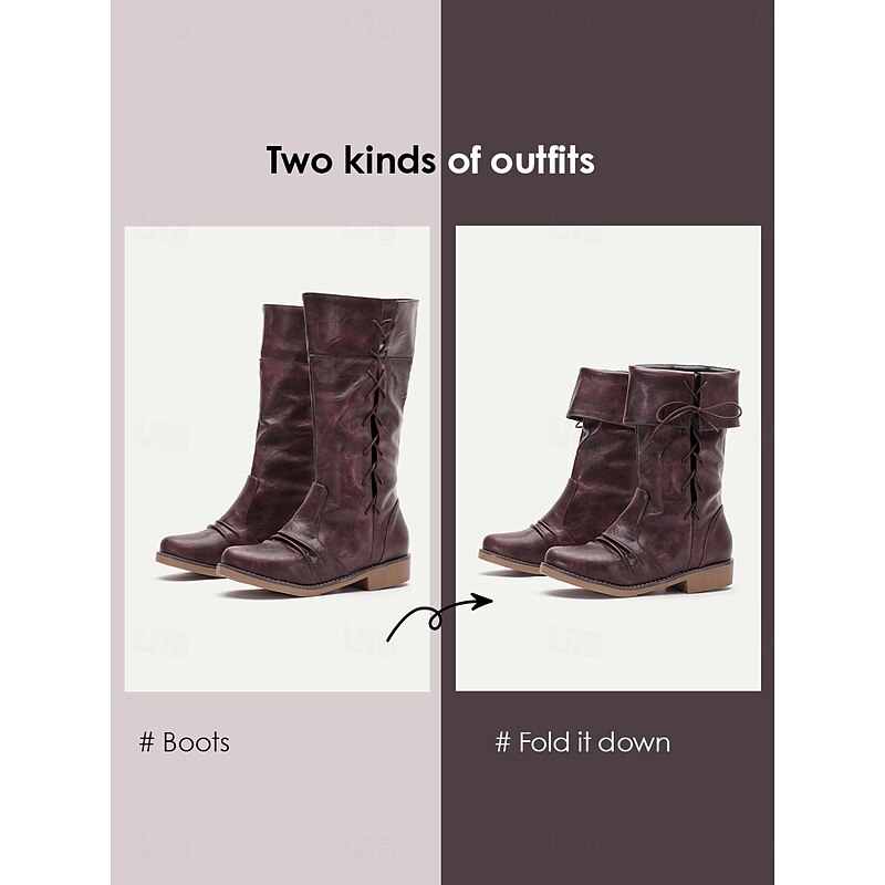 More information about Women's Burgundy Convertible Mid-Calf Boots with Fold-Down Cuff and Lace-Up Detail - Versatile Vintage-Inspired Footwear for Casual and Fall Outfits