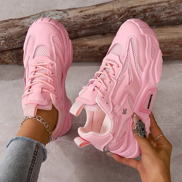 Women's Pink Chunky Mesh Sneakers - Trendy Athletic Casual Shoes for Walking and Running