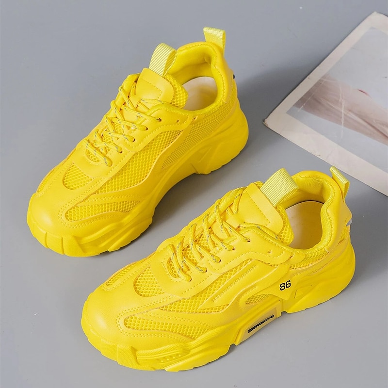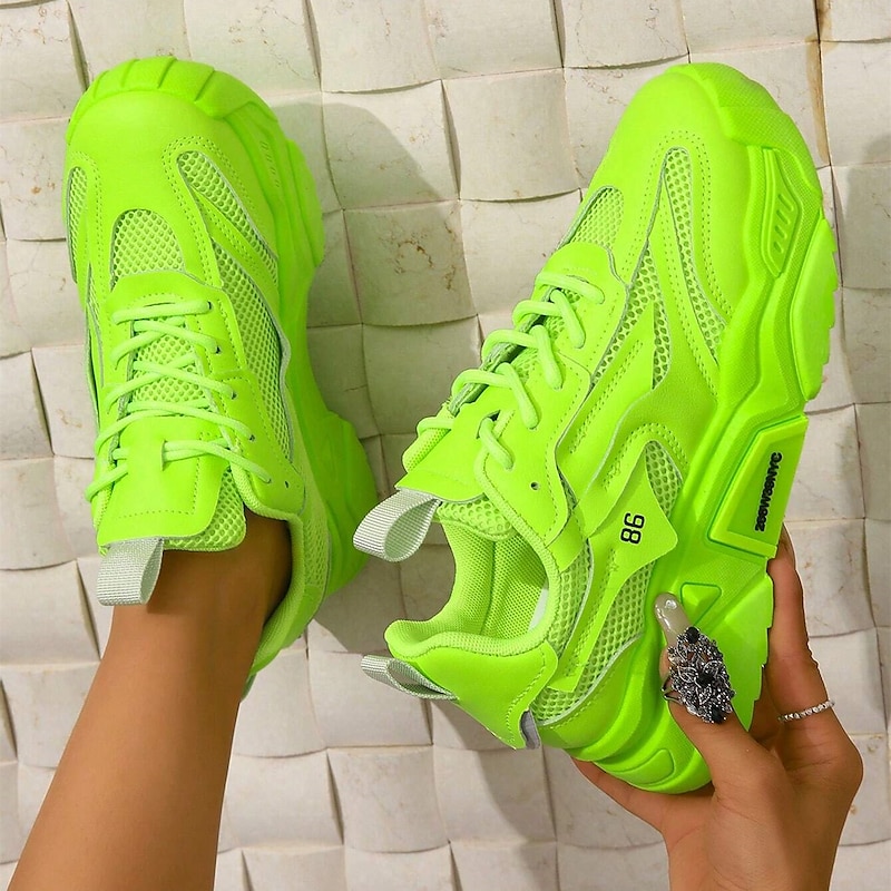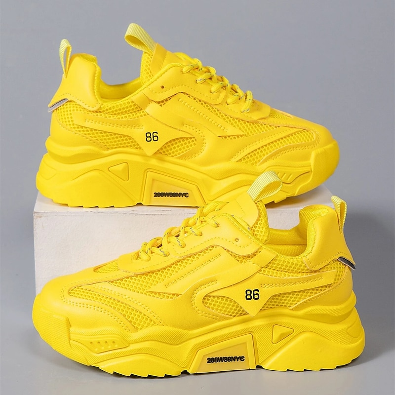 Highlights [Fabric] : Crafted with a breathable mesh and durable synthetic overlays, these women's sneakers are ideal for maintaining comfort and performance. The PU upper materials ensure longevity and style while providing the perfect balance of breathability and support for all-day wear. [Cut] : These sneakers feature a sporty and present-day design with a chunky sole that not only adds height but also offers excellent cushioning. The flat and wedge heel types provide versatility and comfort, making them suitable for various athletic and casual activities. [Design Highlights] : The lace-up closure guarantees a secure fit, complemented by convenient woven tabs on the tongue and heel for easy on-and-off wear. The sneakers combine a round toe shape with a casual, preppy style that includes solid color and color block patterns, offering a trendy yet timeless look. [Occasions] : Perfectly suited for daily activities, whether it's running, tennis, or casual outings. These sneakers are especially great for Valentine's Day and other occasions that require both style and comfort. Their platform height of 1.18 inches enhances their appeal as fashionable driving and height-increasing shoes. [Size Notice] : Available in US sizes ranging from 5.5 to 8.5, it's recommended to select one size larger than usual for an optimal fit. The size chart is provided by the supplier, ensuring a reliable guide for your selection process. Perfect for everyday use. superior materials and excellent craftsmanship ensure long-lasting durability.