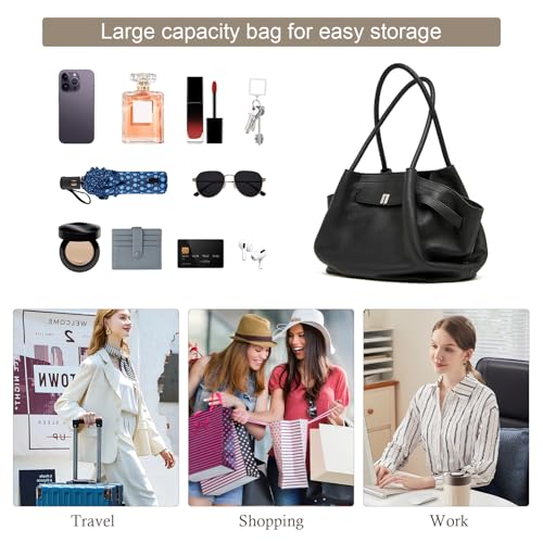 Grain Leather Tote Bags for Women, Spacious Work Tote with Magnetic Closure and Zippered Pocket, Minimalist Office Bags