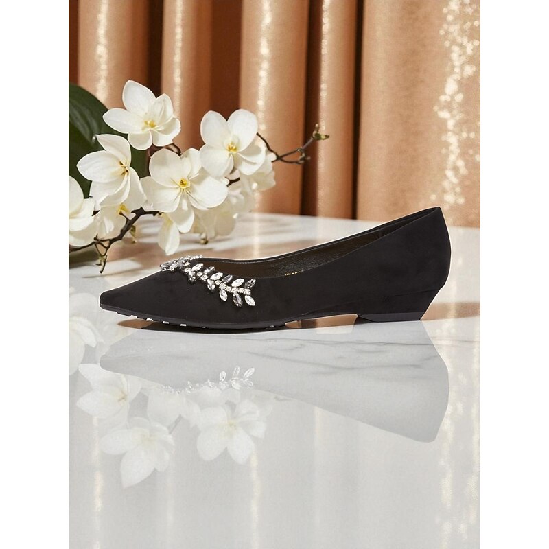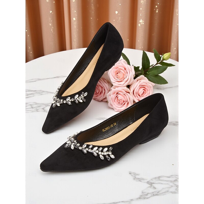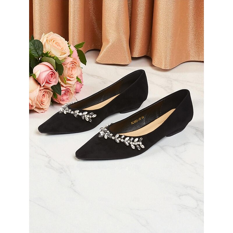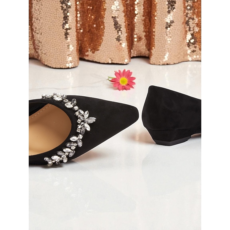 More information about Women's Black Suede Pointed Toe Flats with Rhinestone Embellishments, Elegant Dress Shoes for Cocktail Parties & Evening Events