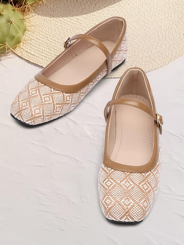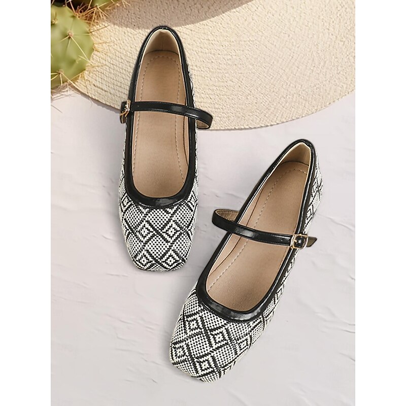 More information about Women's Patterned Fabric Mary Jane Flats - fashionable Low-Heel Shoes with Adjustable Strap for Everyday Comfort