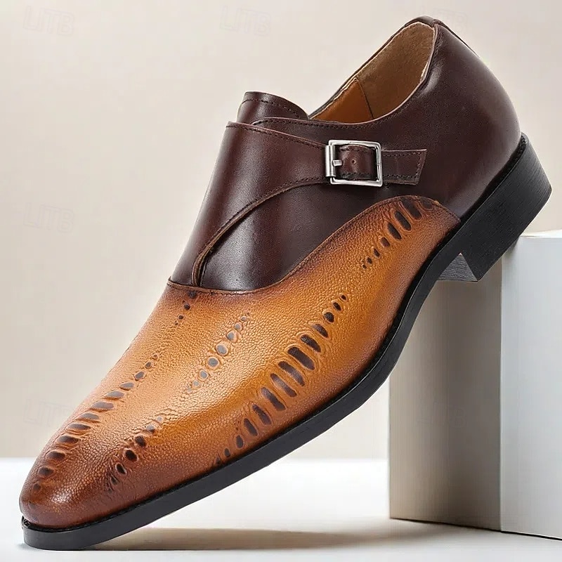 popular ! Men's Brown Monk Strap Dress Shoes with Laser Cut Detailing – Elegant Premium Leather Prom and Banquet Shoes