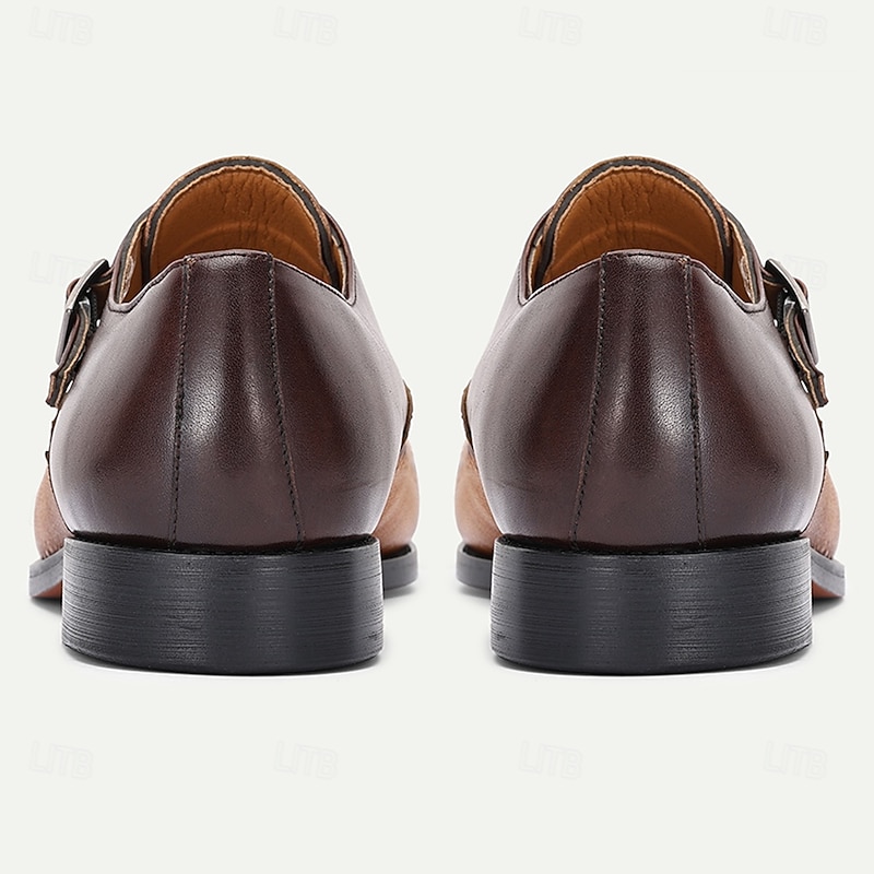 More information about Men's Brown Monk Strap Dress Shoes with Laser Cut Detailing – Elegant Premium Leather Prom and Banquet Shoes