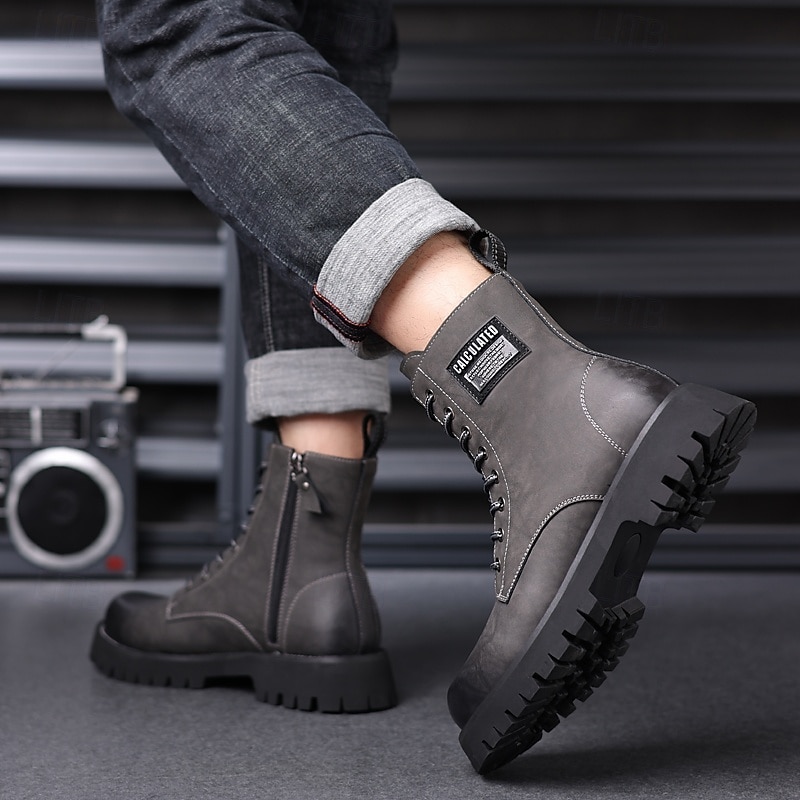 popular ! Men's Heavy-Duty Work Boots – Slip-Resistant Leather Safety Footwear with Shock-Absorbing Outsole for Construction, Landscaping and Outdoor Jobs