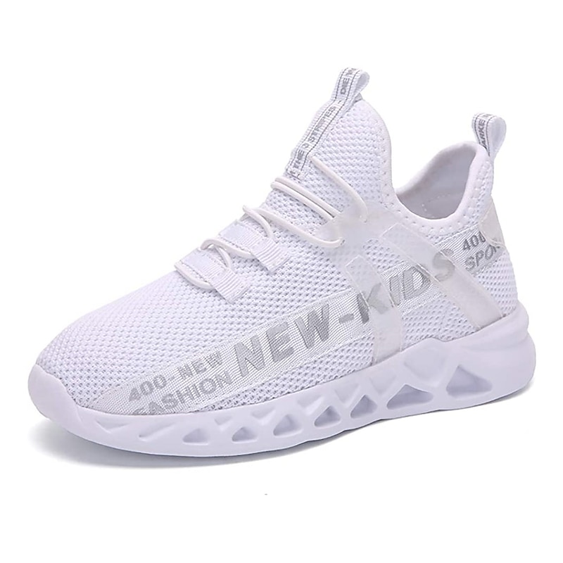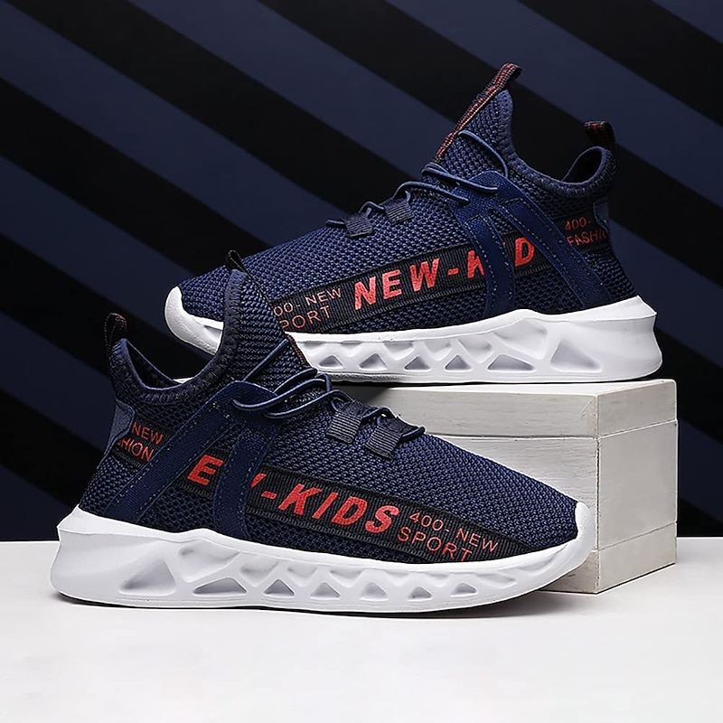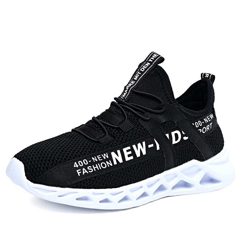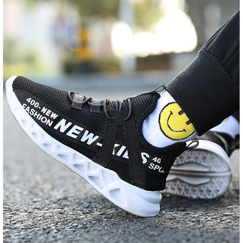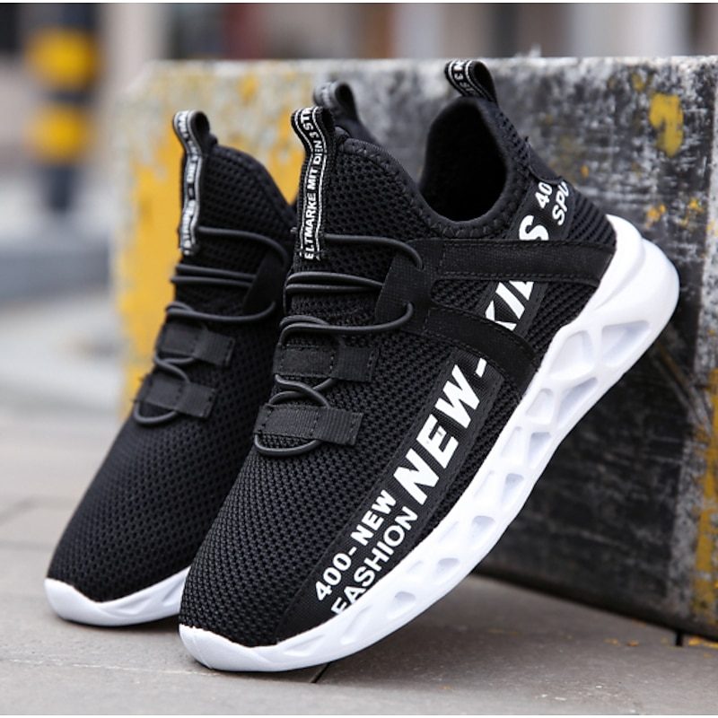 Kids' Black Breathable Mesh Running Sneakers with Lace-Up Design and Bold Letter Print - cozy Athletic Shoes for Boys