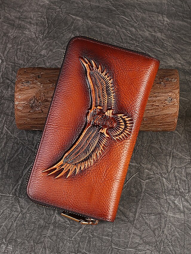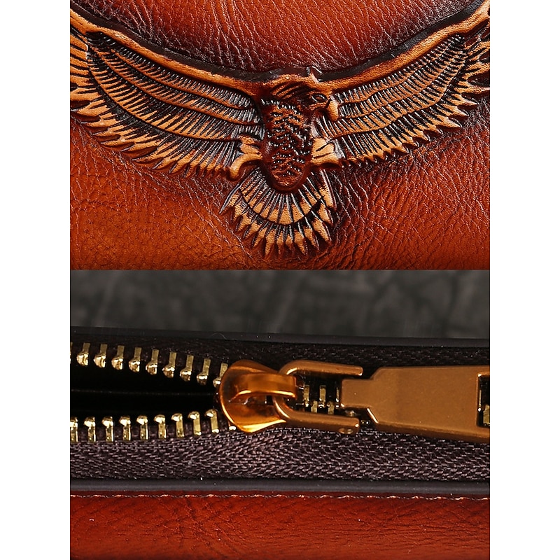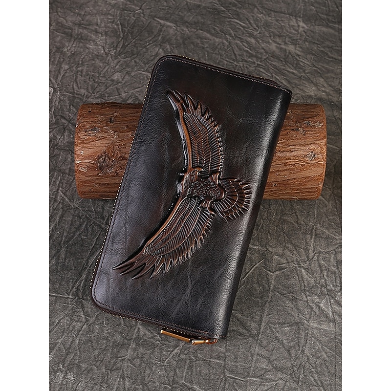 Women's Genuine Leather Long Wallet with Carved Eagle Design, Vintage Zipper Clutch Purse for Stylish Ladies, Perfect for Daily Use and Special Occasions 8