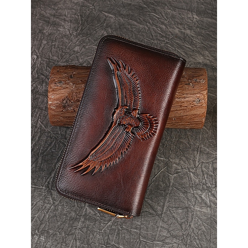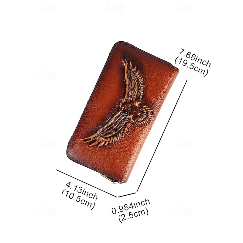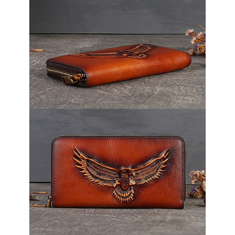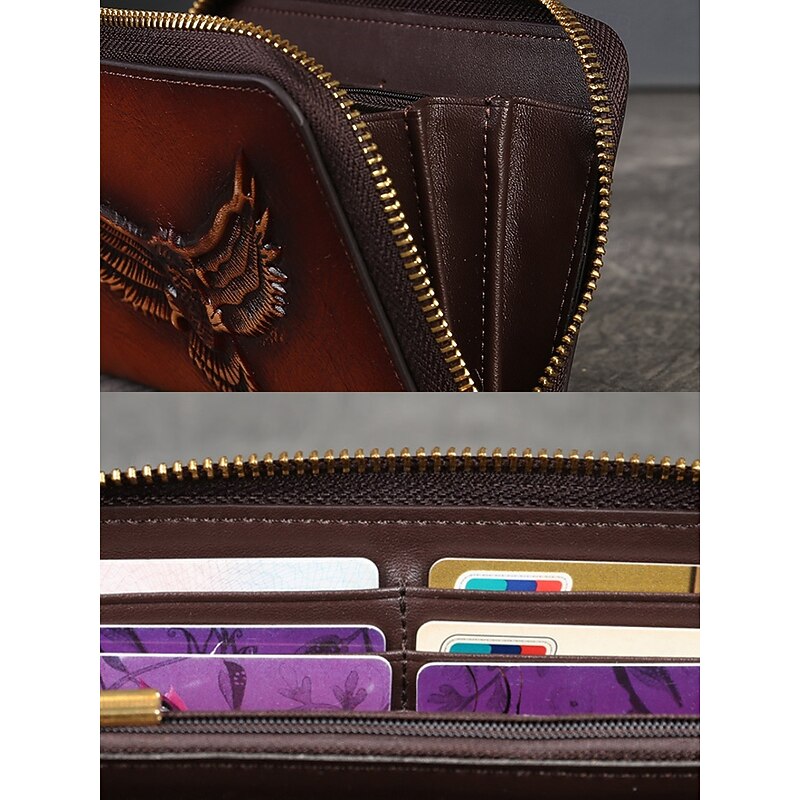 Women's Genuine Leather Long Wallet with Carved Eagle Design, Vintage Zipper Clutch Purse for Stylish Ladies, Perfect for Daily Use and Special Occasions 14