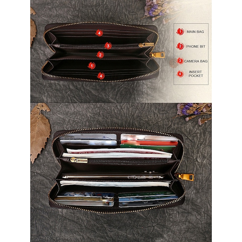Women's Genuine Leather Long Wallet with Carved Eagle Design, Vintage Zipper Clutch Purse for Stylish Ladies, Perfect for Daily Use and Special Occasions 13