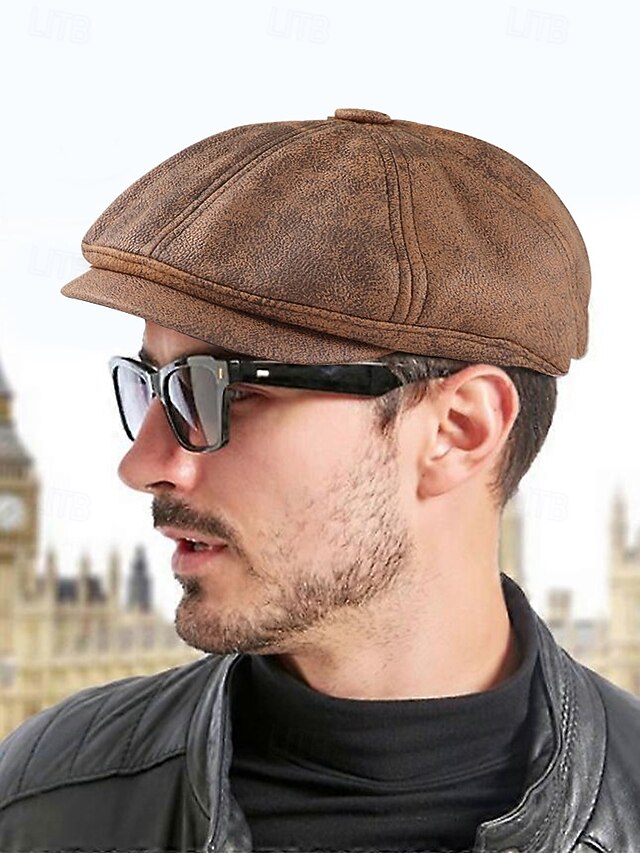 $18.99 - Men's Vintage Newsboy Cap – Stylish Faux Leather Look Flat Cap for Casual or Formal Wear, Available in Multiple Colors 2025. Shop for cheap Men's Hats online? Buy at lightinthebox.com on sale today!