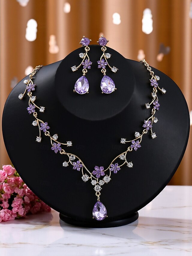 $14.99 - Women's Gold-Tone Floral Necklace and Earrings Set with Purple and Clear Crystals, Elegant Jewelry for Parties and Special Occasions 2025. Shop for cheap Women's Necklace online? Buy at lightinthebox.com on sale today!
