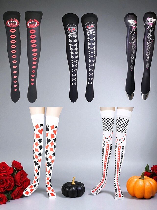 $14.99 - Women's Halloween Over-the-Knee Socks with Gothic Skull, Vampire and Card Print - Fun Nightlife Party Hosiery for Costume and Cosplay Outfits 2025. Shop for cheap Halloween Accessories online? Buy at lightinthebox.com on sale today!