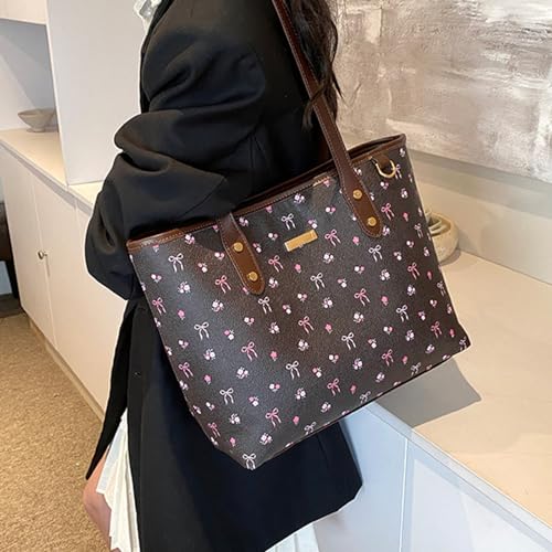 popular ! Cute Tote Purse Top Handle Floral Hangbags Faux Leather Shoulder Floral Cherry Purse with Zipper Closure