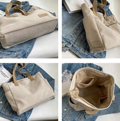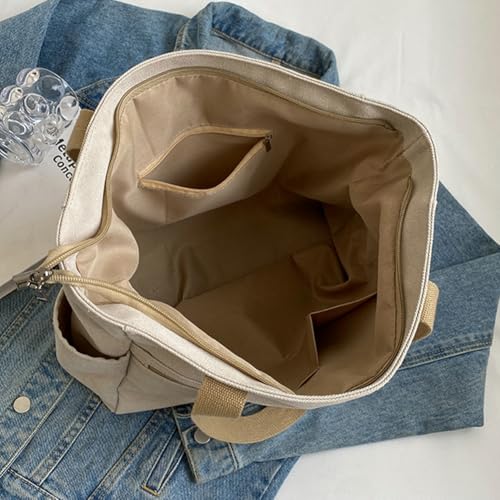 Large Canvas Tote Bag for Women Casual Shoulder Purse with Multiple Pockets Tote Handbag for College Work Travel 5