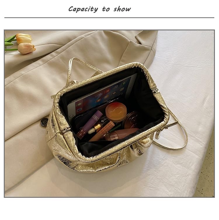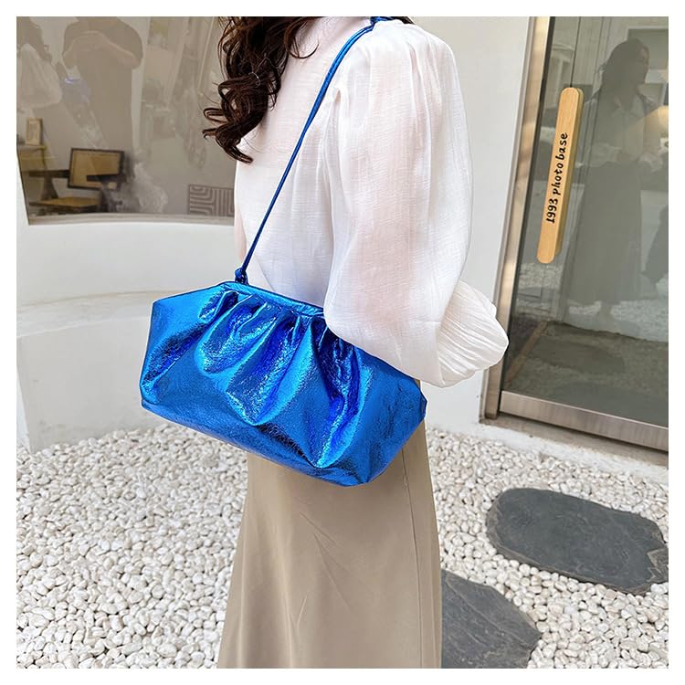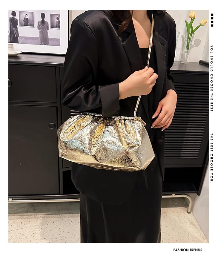 Women’s smooth Cloud Dumpling Pouch Bag,Ruched Soft Vegan Leather Clutch Purse Shoulder Bag