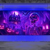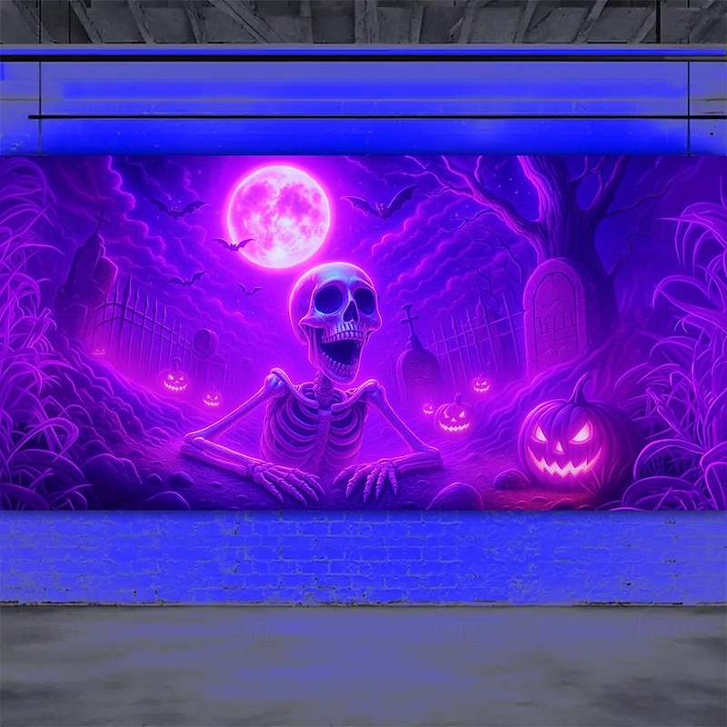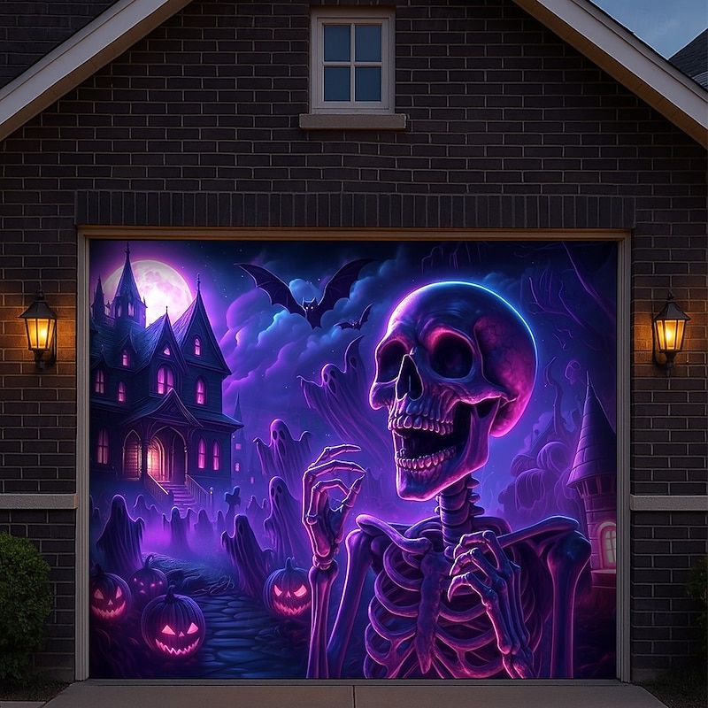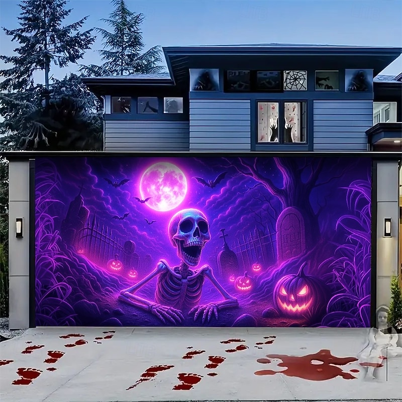 $34.99 - Halloween Garage Door Cover Neon Skeleton with Haunted House Banner, Glowing Blacklight Backdrop Decoration for Holiday Outdoor Garage Door and Home Wall, 2025 Halloween Decorations 2025. Shop for cheap Halloween Garage Door Cover online? Buy at lightinthebox.com on sale today!