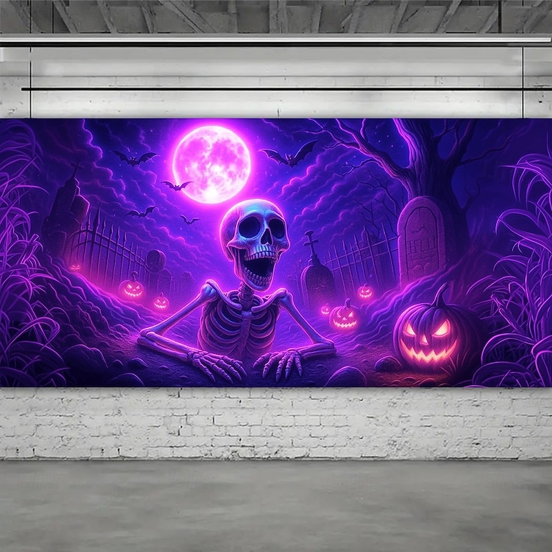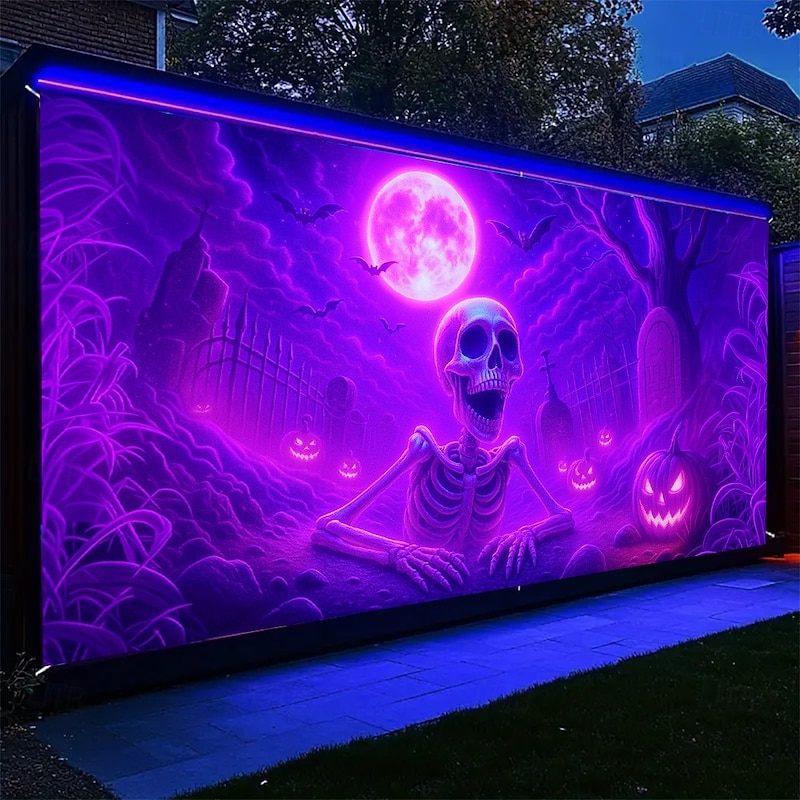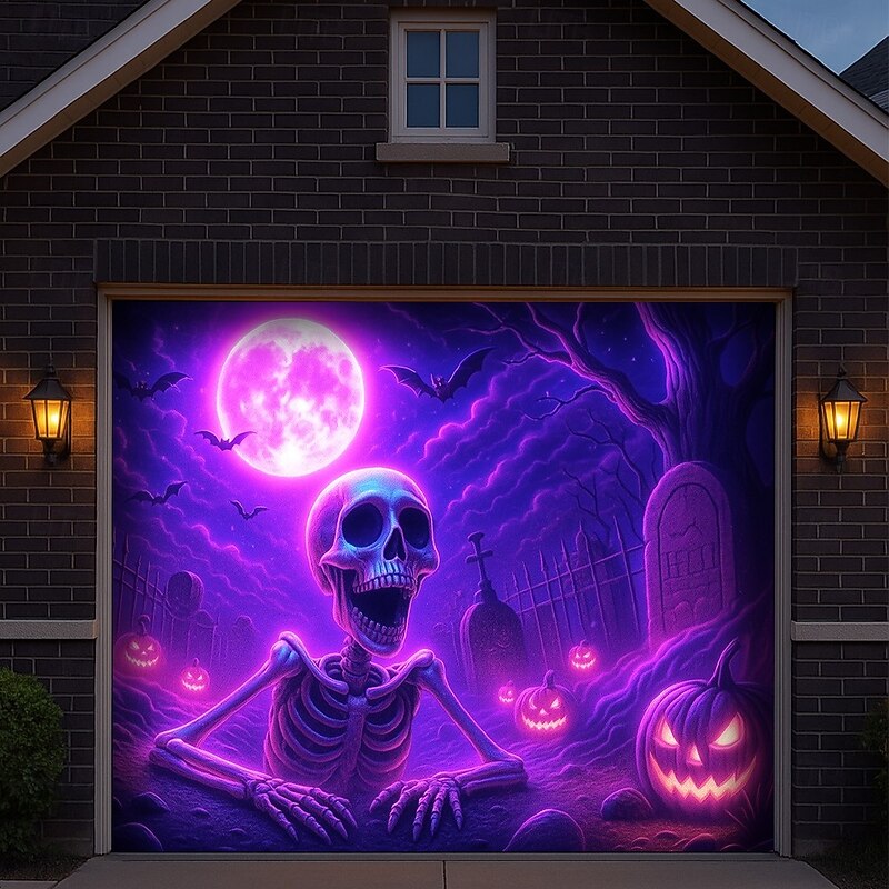 Why Choose Halloween Garage Door Cover Neon Skeleton with Haunted House Banner, Glowing Blacklight Backdrop Decoration for Holiday Outdoor Garage Door and Home Wall, 2025 Halloween Decorations?