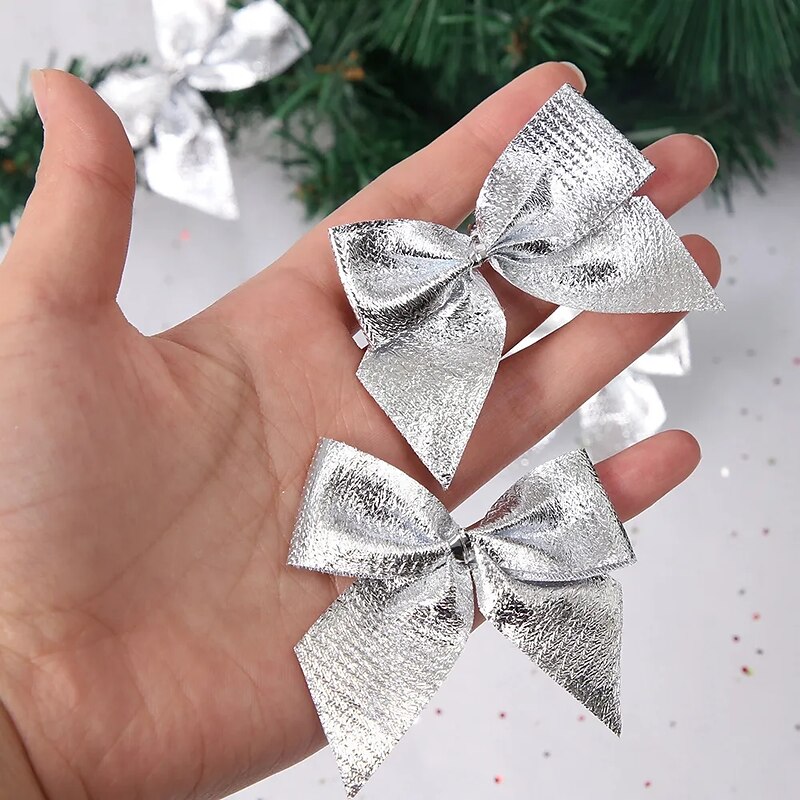 36pcs/set Craft Bows DIY Christmas Tree Decorations Bows For Crafts Christmas Bows Gold Silver Red Bowknot Home Decoration 4