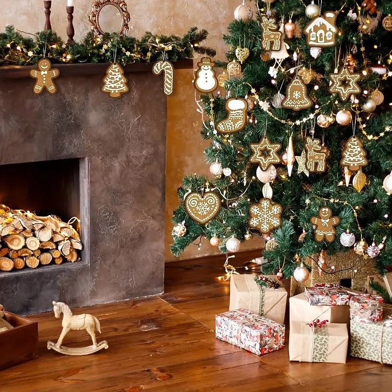 Why Choose 24pcs Wooden Christmas Ornaments, Xmas Tree Pendant Decoration - Rustic Hanging Decor in Gingerbread, Stars, Hearts, Bells, Snowmen, Stockings, Moose, and Peppermint Candy Cane Shapes?