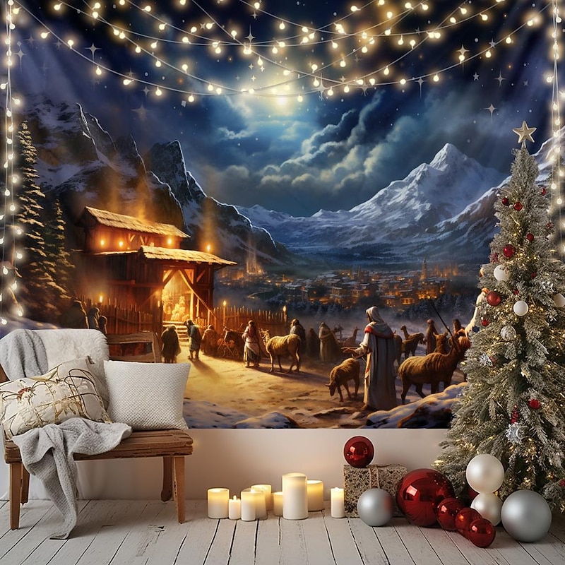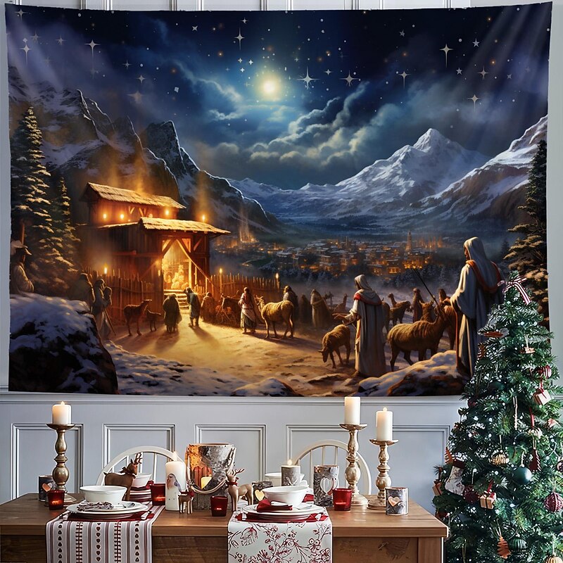 Christmas Decorations Nativity Scene Baptism Hanging Tapestry Wall Art Xmas Large Tapestry Mural Decor Photograph Backdrop Blanket Curtain Home Bedroom Living Room Decoration