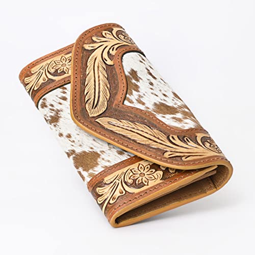 Women's Western Cowhide Leather Trifold Wallet | Handmade Tooled Buckaroo Clutch with Rose Design | trendy Rustic Cowgirl Purse for Everyday & Travel