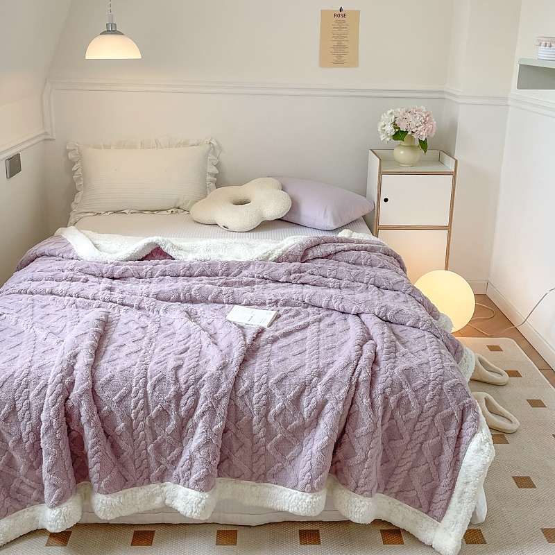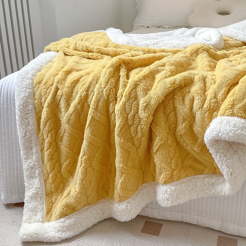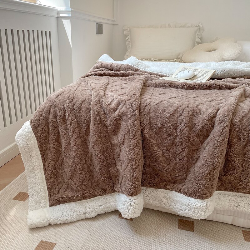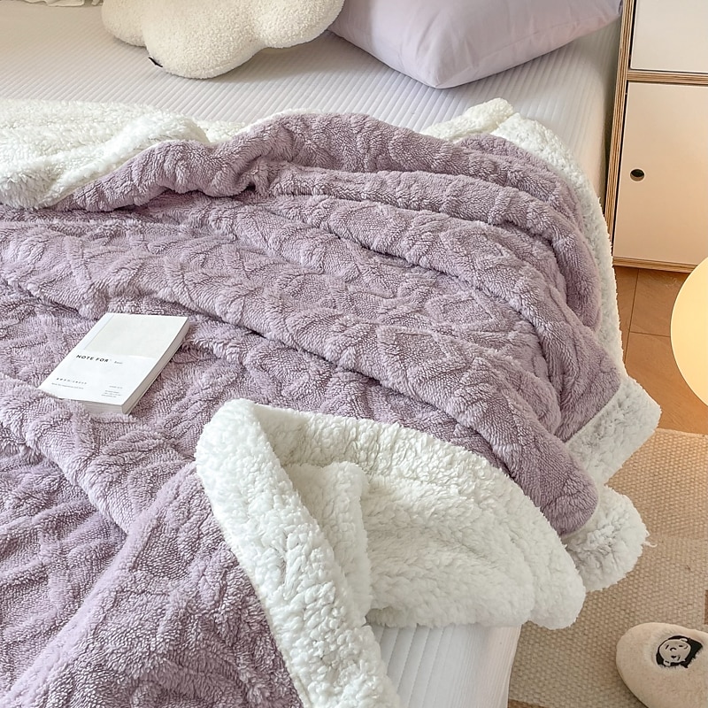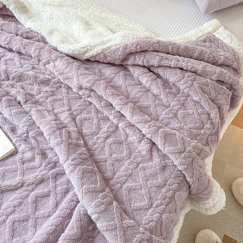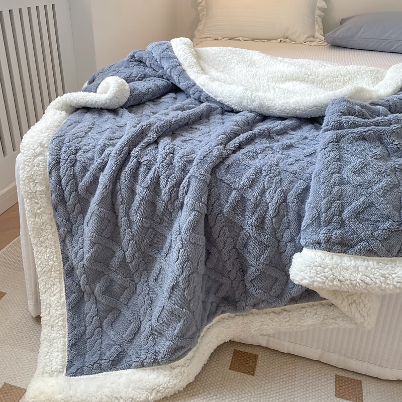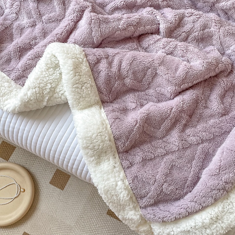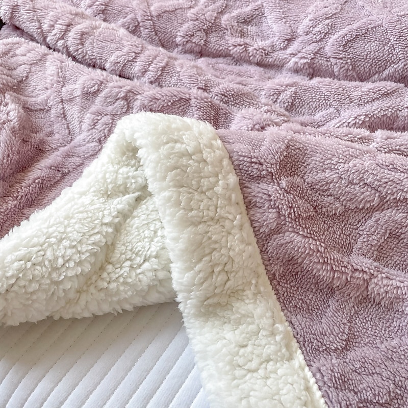More information about Solid Color Thickened thermal Double Layer Lamb Cashmere Jacquard Blanket Office Nap Blanket Sofa Warmer Super smooth Blankets