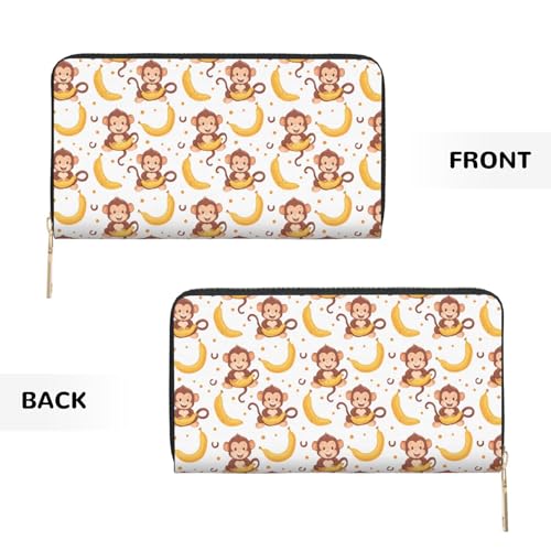 Leather Thin Slim Wallets for Women Men - Fashion Cute Banana Monkey Print Card Wallet Holder with Zipper