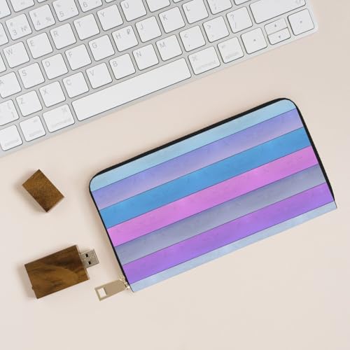 Colorful Wood Grain A Print Wallet Women Men, Long PU Leather Wallets for Women, Cute Womens Travel Wallet Purse Pouch with Zipper Pocket