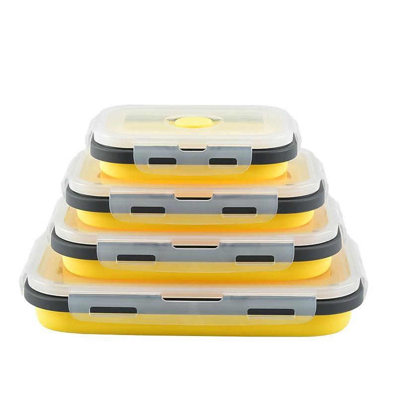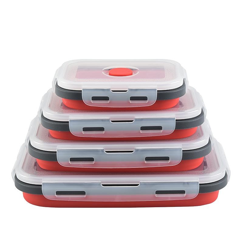 Square Silicone Crisper Refrigerator Outdoor Portable Lunch Box Retractable Folding Silicone Lunch Box Set 4