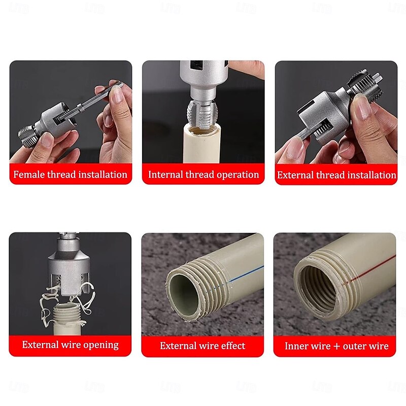 Why Choose Integrated Internal & External Pipe Threading Tool Kit for Electric Drill Thread Cutter, 1/2 and 3/4 Compatible, Applicable to PVC/PPR/PE Pipes (3/4")?
