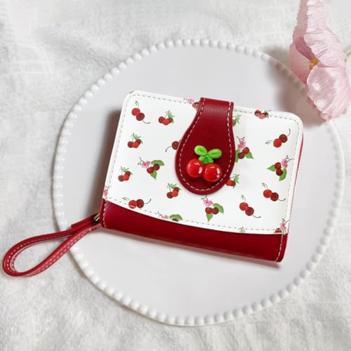 popular ! Cute Print Wallet Blueberry Strawberry Cherry Wallet with Credit Card Slot Zipper Coin Pocket for Women Girls (RED)