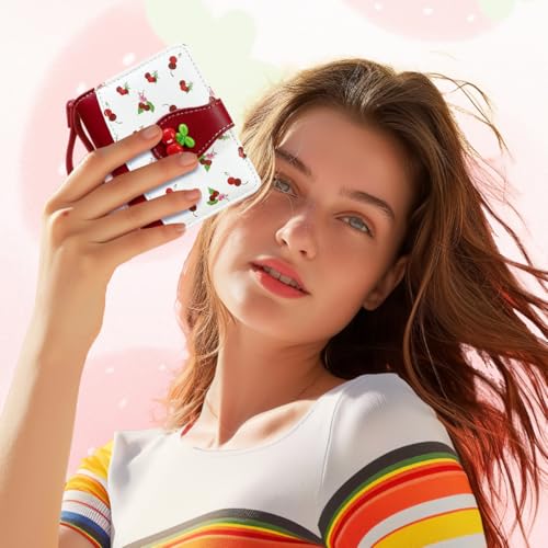 Cute Print Wallet Blueberry Strawberry Cherry Wallet with Credit Card Slot Zipper Coin Pocket for Women Girls (RED) 6