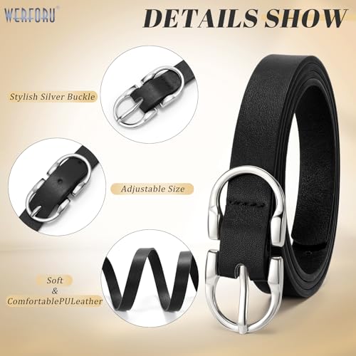 More information about WERFORU 2Pack Thin Belts for Women Skinny Leather Belts for Jeans Pants Women Thin Leather Belt Black Belt with Gold Buckle