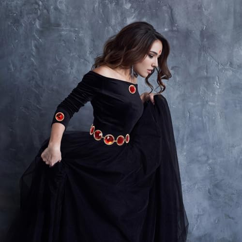 Halloween Waist Belt with Red Gems, Round Rhinestones and Diamond Chain for Costumes