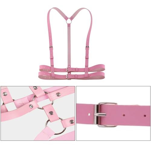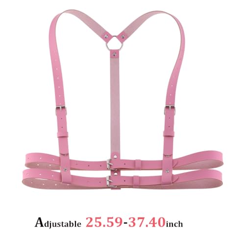 Chest Harness For Women – Gothic Strappy Shoulder & Upper Body Harness – Bondage-Sexy Punk Body Harness Belt– Fashion Statement for Clubwear, Cosplay, Raves & Alternative Streetwear Pink