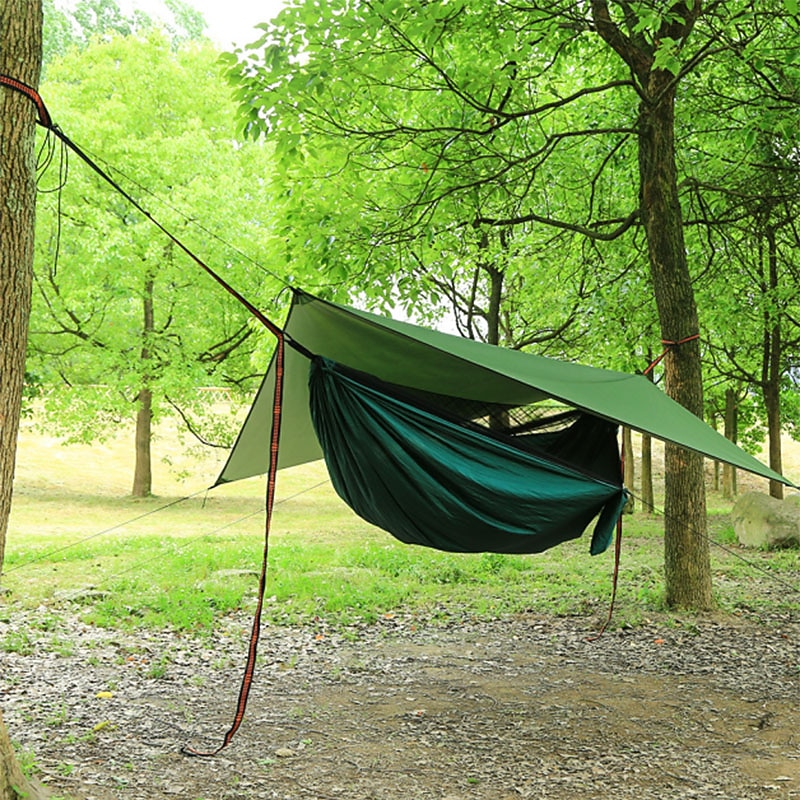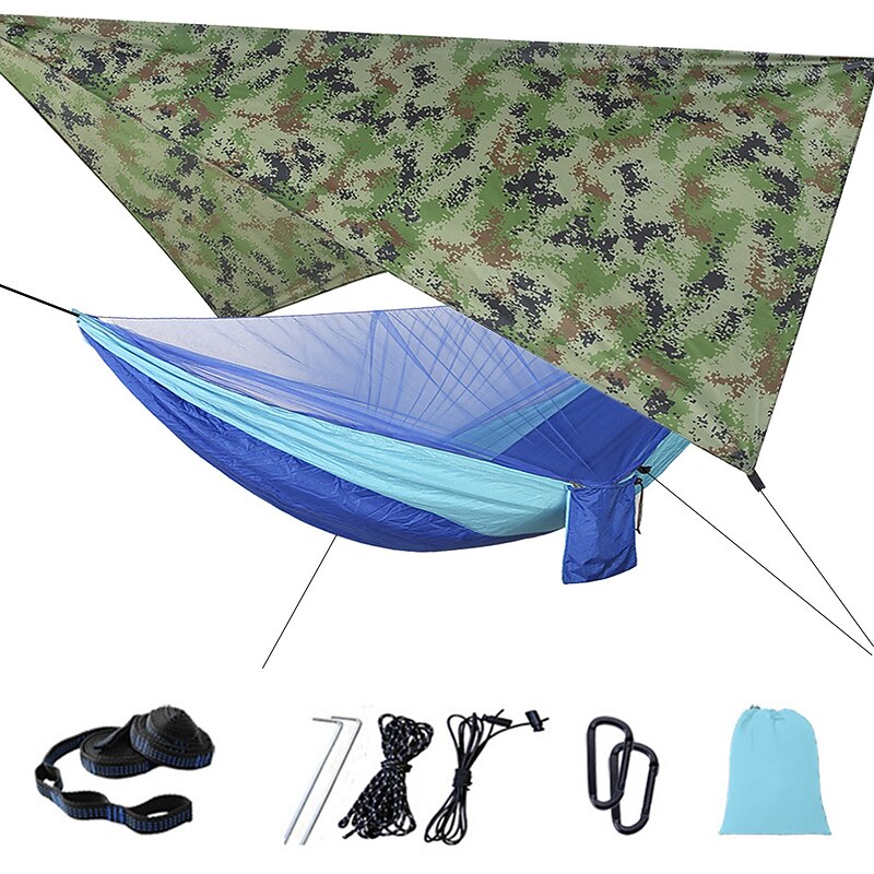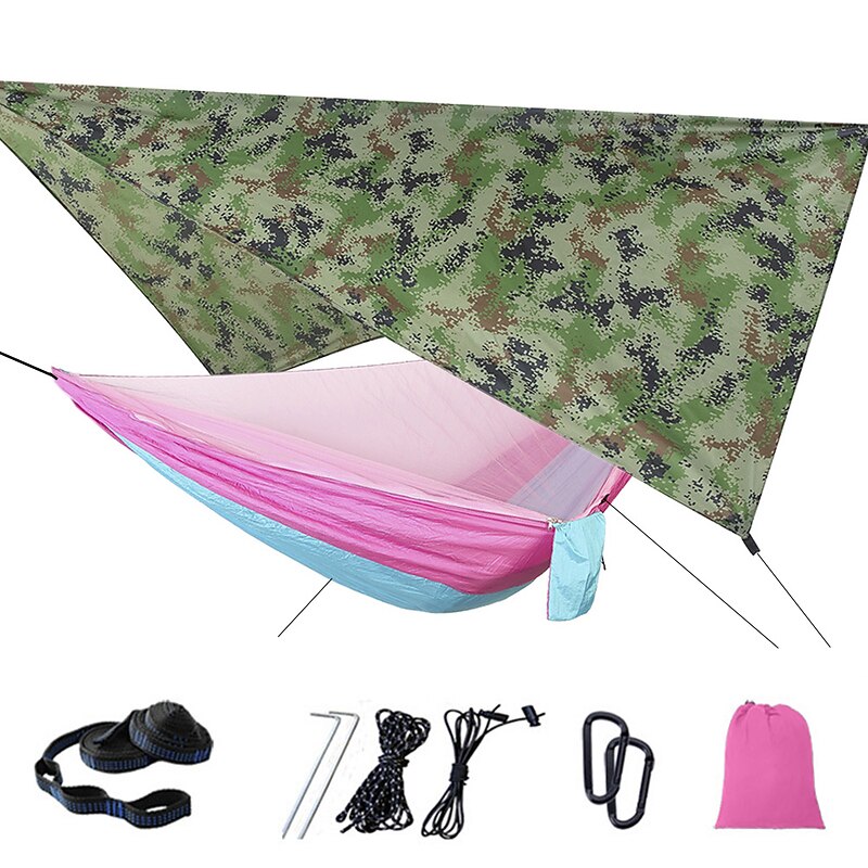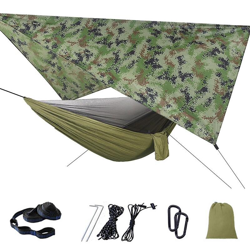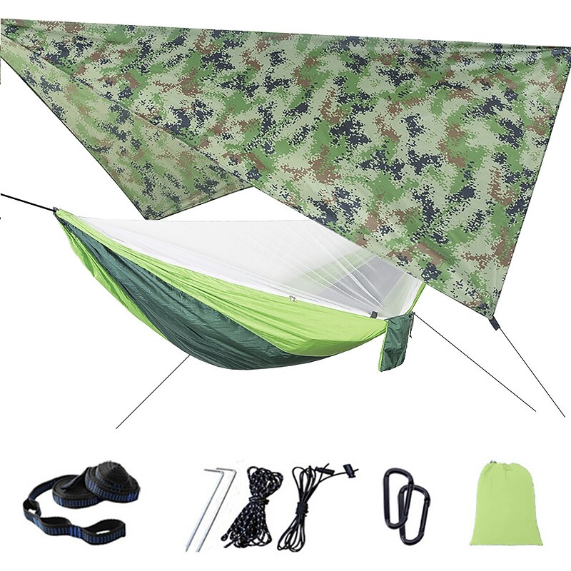 Camping Hammock with Mosquito Net Hammock Rain Fly Camping Tarp Outdoor Portable Sunscreen Anti-Mosquito Ultra Light (UL) Breathable Parachute Nylon with Carabiners and Tree Straps for 2 person 18
