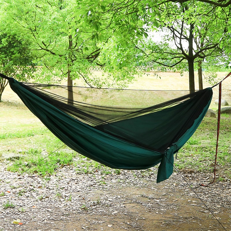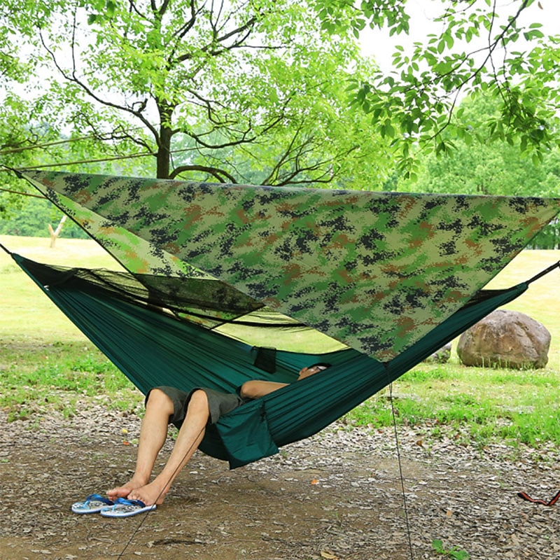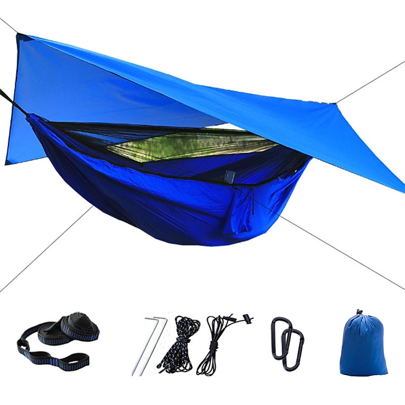 popular ! Camping Hammock with Mosquito Net Hammock Rain Fly Camping Tarp Outdoor Portable Sunscreen Anti-Mosquito Ultra Light (UL) Breathable Parachute Nylon with Carabiners and Tree Straps for 2 person