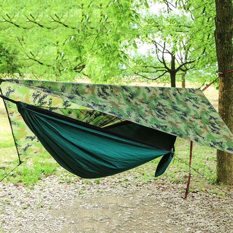 Camping Hammock with Mosquito Net Hammock Rain Fly Camping Tarp Outdoor Portable Sunscreen Anti-Mosquito Ultra Light (UL) Breathable Parachute Nylon with Carabiners and Tree Straps for 2 person 21
