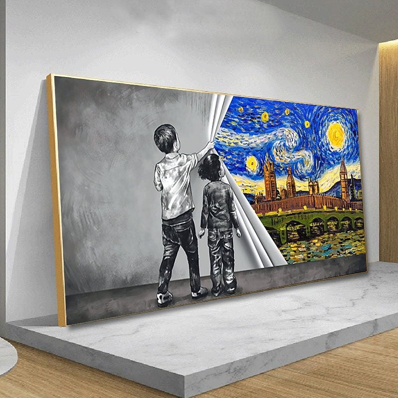 Handmade Hand Painted Wall Art contemporary Abstract Van Gogh Starry Night Landscape Home Decoration Decor Rolled Canvas No Frame Unstretched